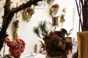 年末営業の期間中はお正月用商品の販売がメインとなりますので当日のブーケ、アレンジメントの制作は受付しておりません